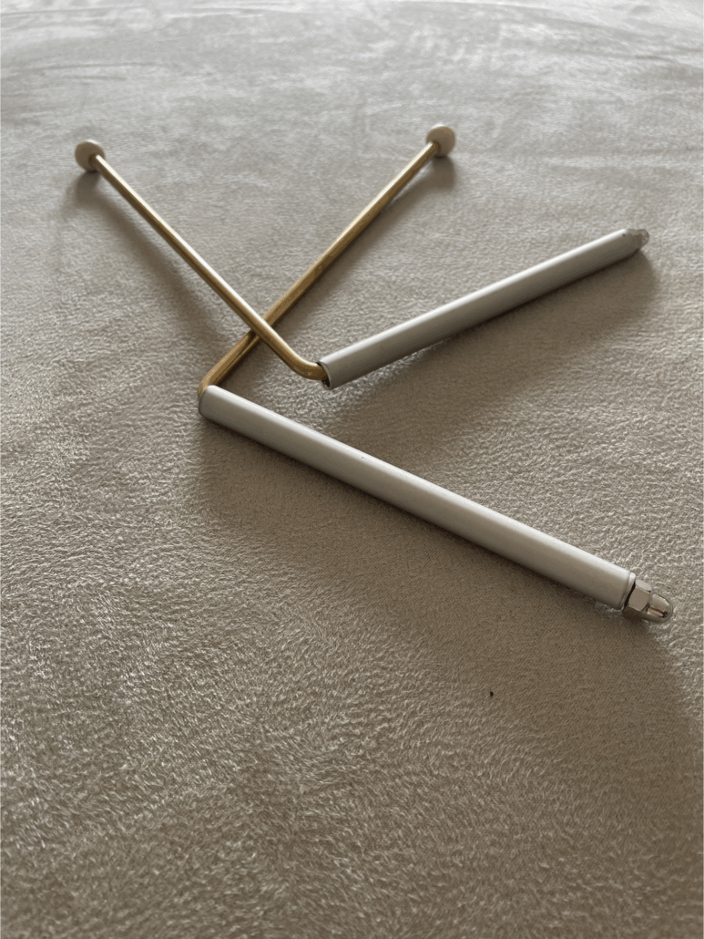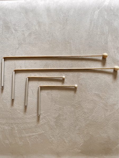 Le nostre bacchette a L “Standard” sono progettate per chi cerca uno strumento affidabile, bilanciato e duraturo. A differenza delle varianti economiche sottili, utilizziamo esclusivamente ottone pieno con diametro da 4 mm. Questa scelta garantisce una massa critica ottimale: le bacchette non oscillano accidentalmente con il vento, ma rispondono con precisione ai micro-movimenti neuromuscolari dell’operatore.